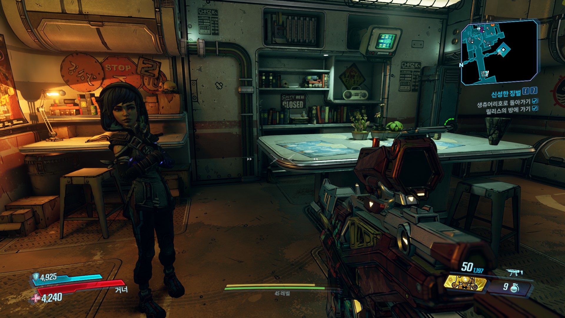 시스템적 완성도는 전투 밖에서도 빛난다. 거점인 '생츄어리 III'호는 유저가 무엇을 필요로 하는지 정확히 알고 설계되었다. 좁은 함선 내에 상점, 창고, 분실물 자판기, 빠른 이동 스테이션 등 모든 편의 시설을 밀도 있게 배치했다. 덕분에 플레이어는 정비 시간을 최소화하고, 곧바로 다시 전장에 투입될 수 있다. 전투의 템포, 몹의 밀도, 총기의 개성, 그리고 편의성까지. '게임플레이'라는 뼈대만 놓고 본다면 이 게임은 5점 만점에 5점을 받아 마땅하다.