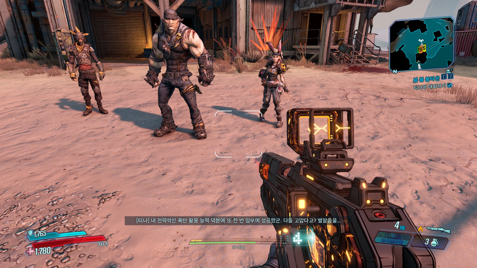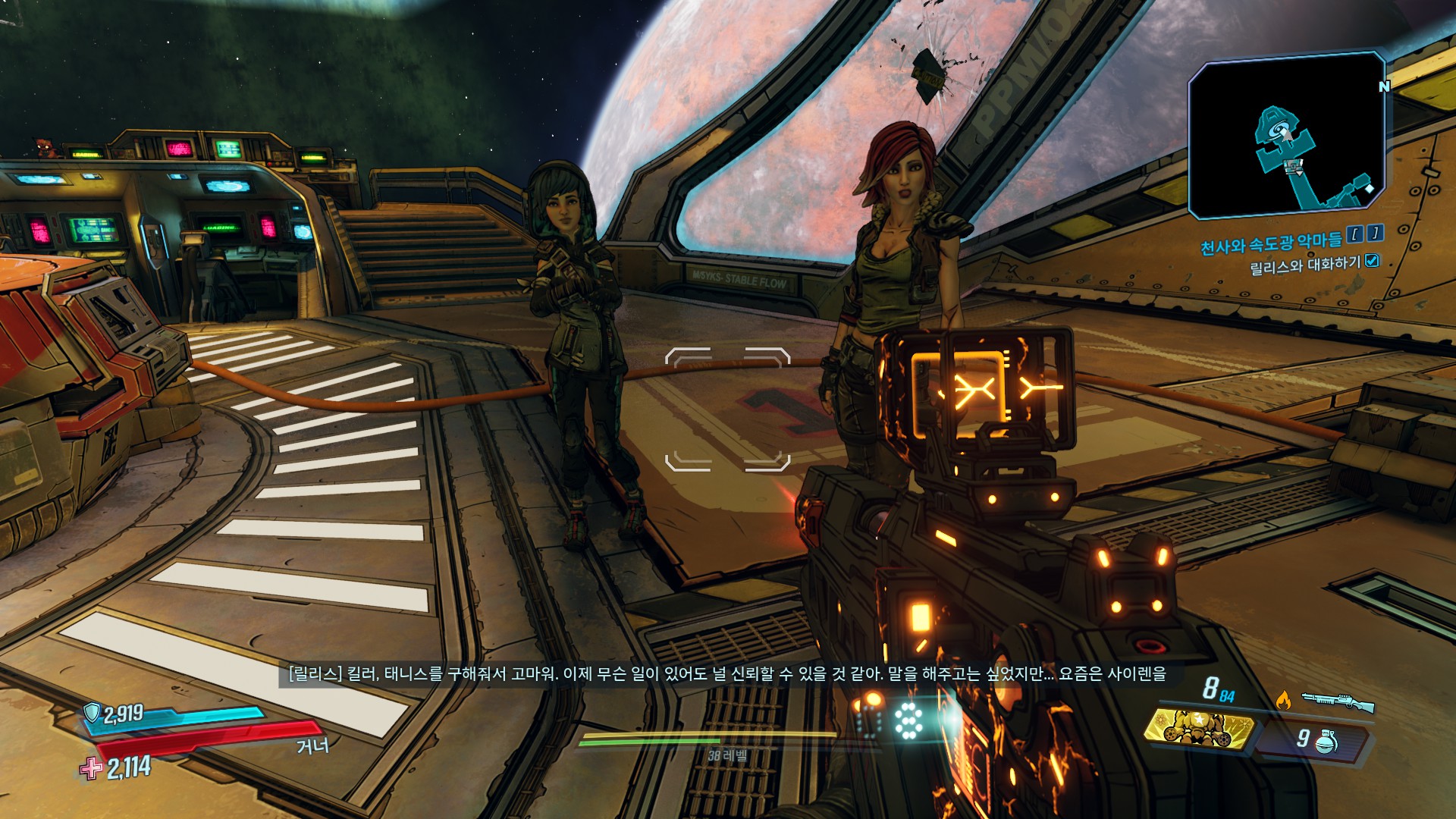 이 분절된 서사를 억지로 잇기 위해 제작진이 선택한 방법은 최악이었다. 바로 '끊임없는 수다'다. 생츄어리 III호에 탑승한 릴리스, 테니스, 마커스, 엘리 등은 플레이어의 몰입을 돕기는커녕 방해꾼이 되었다. 편의 기능을 위해 그들을 한곳에 모아둔 것은 좋았으나, 그들에게 너무 많은 대사(스크립트)를 부여한 것이 화근이었다. 그들은 쉴 새 없이 떠든다. 중요하지 않은 농담, 상황 설명, 자기들끼리의 만담이 인게임 보이스로 끊임없이 흘러나온다. 전투의 긴박함을 즐겨야 할 순간에도 릴리스의 지시는 이어지고, 엘리의 걸걸한 농담은 귀를 피로하게 만든다. 전작의 감초였던 그들은 이제 '즐거운 동료'가 아니라, 게임의 몰입을 방해하는 '소음 유발자'가 되어버렸다.